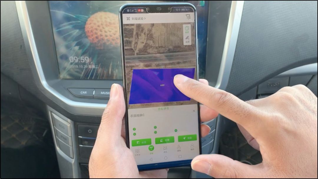 一改之前随意取点的方式,金地科技智农取土设备会提前通过遥感图像查看作物长势,以长势为分界选择取土位置.在选定位置后,取土车会按照取点位置导航过去.每个取土点都根据土钻标定,统一取土标准深度30-60cm,有效提高取土的精准度,为土壤监测的准确性提供有力支撑.