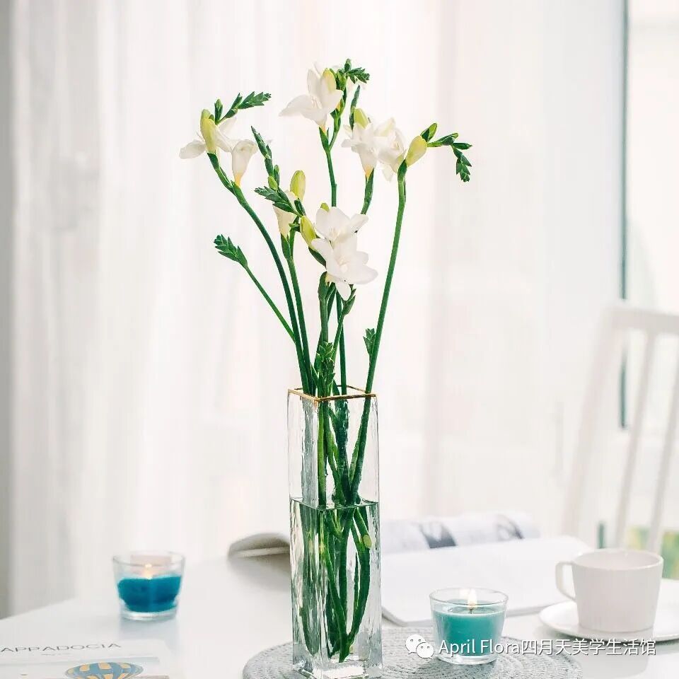 3.香雪兰养护时最好在花瓶里加入可立鲜或者几滴84消毒液,花瓣和叶片上不要碰水,容易烂瓣哦~