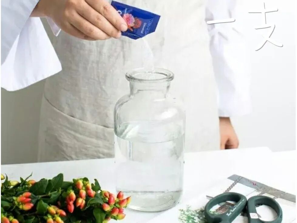 养护 步骤① 去包装、海绵片、醒花 准备花剪、花瓶 养护 步骤② 洗净花瓶,放入 2/3 的水 加入可立鲜,为鲜花提供养分 (1:100比例) 养护 步骤③ 摘除多余的叶子 泡水部分的叶片需要全部摘除 养护 步骤④ 以45度斜切鲜花根部 花头距离花瓶15-20cm 养护 步骤⑤ 插瓶即可 有保鲜剂 保持3天换水 剪根并洗根 无保鲜剂 最好每天换水 水浑浊要立马换水 4 避雷区 避免太阳直射 远离水果及出风口 换水的同时 记得清洗花瓶 红豆喜水 可往叶子和果子上喷水 花瓶也要每天加水 1 完